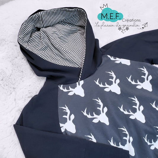 Hoodie chevreuil marine 3 à 5 ans , LIQUIDATION