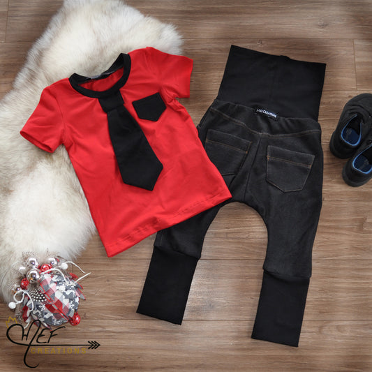 T-shirt garçon rouge vif à cravatePrix habituel Du $25.00Prix habituelPrix unitaire / par-