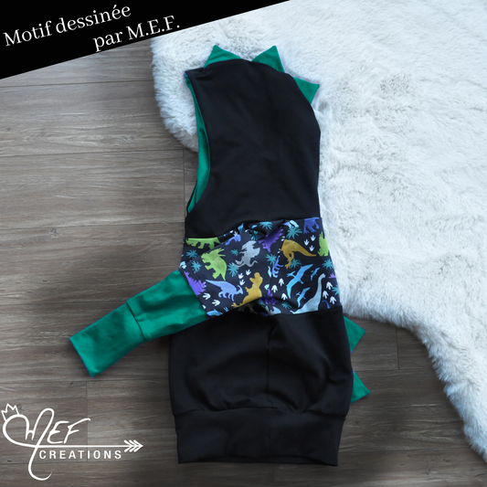 Hoodie Dinosaure vert - motif exclusif MEF CRÉATIONS