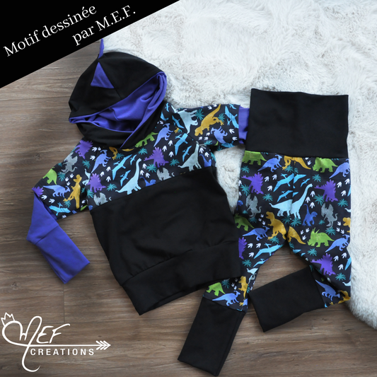 Hoodie Dinosaure violet, exclusif MEF CRÉATIONS