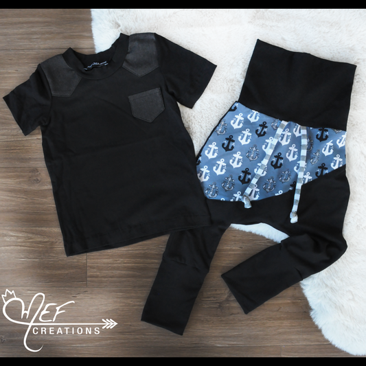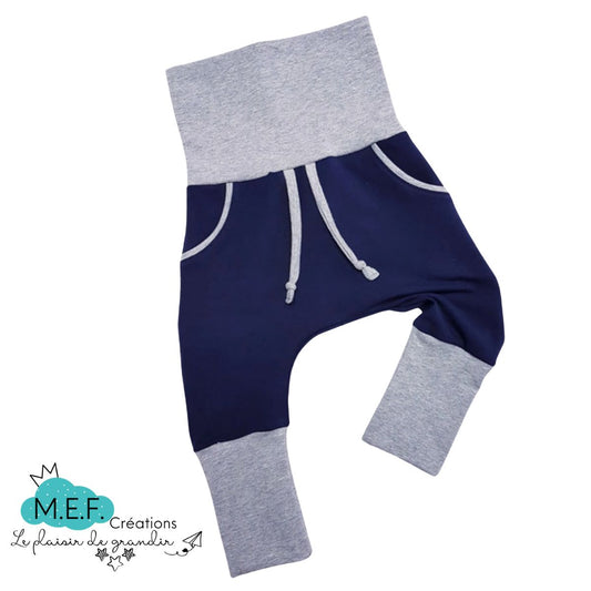 Pantalon évolutif ancre, coupe sarouel évolutif