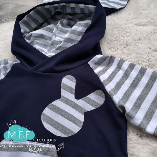 Hoodie lapin MARINE évolutif, MOTIF EXCLUSIF MEF