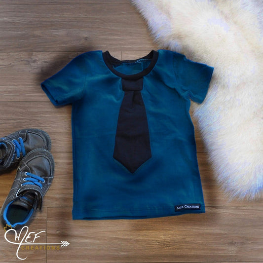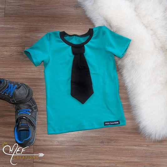 T-shirt garçon à cravate bleu pétrol