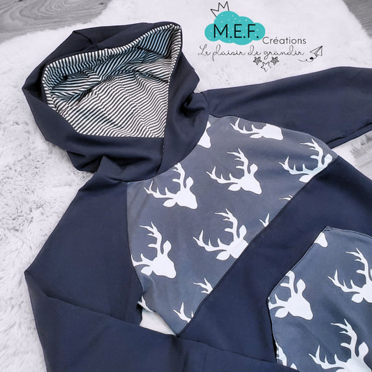 Hoodie cerf marine 5 à 7 ans, LIQUIDATION