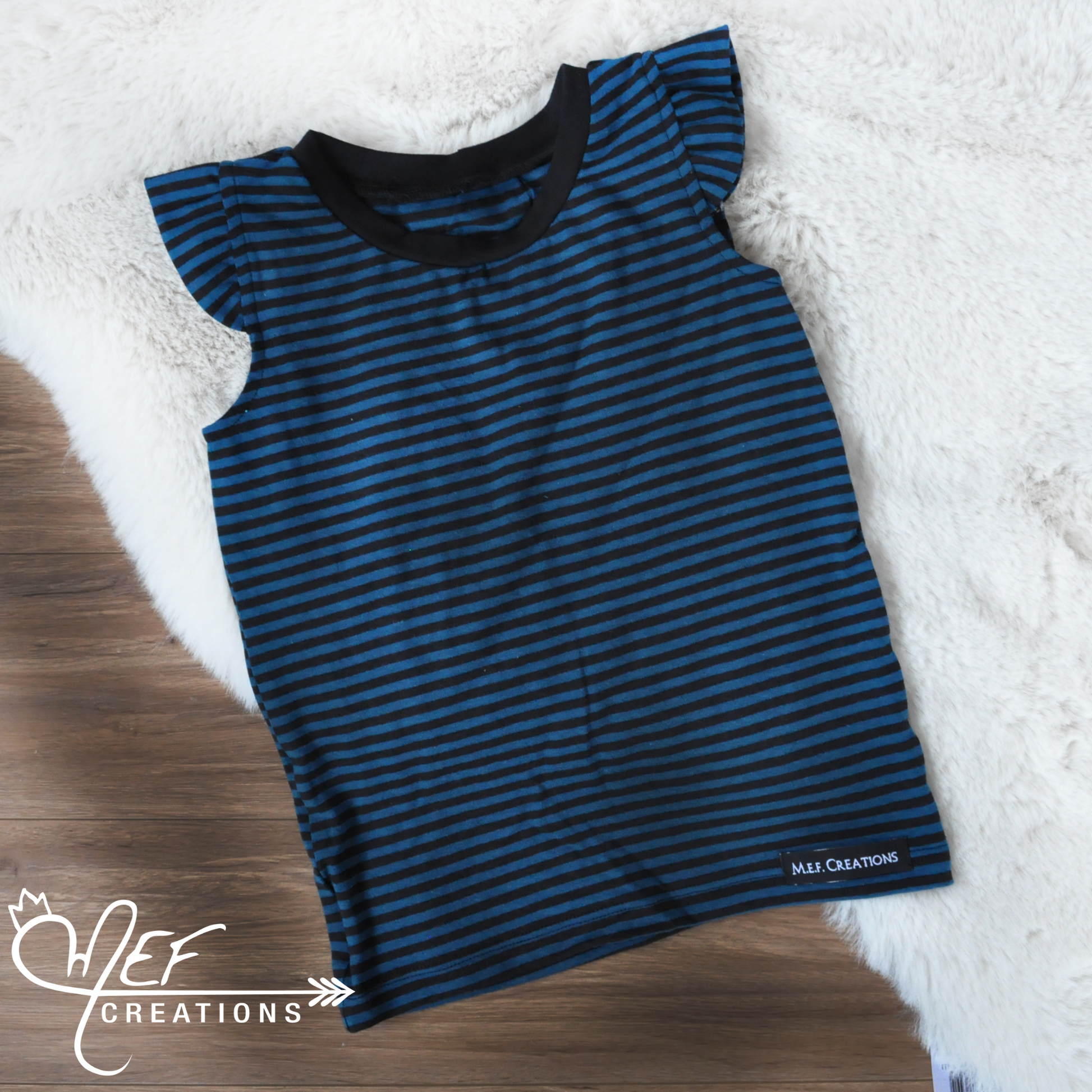 Débardeur fillette à volants rayé pétrole et noir