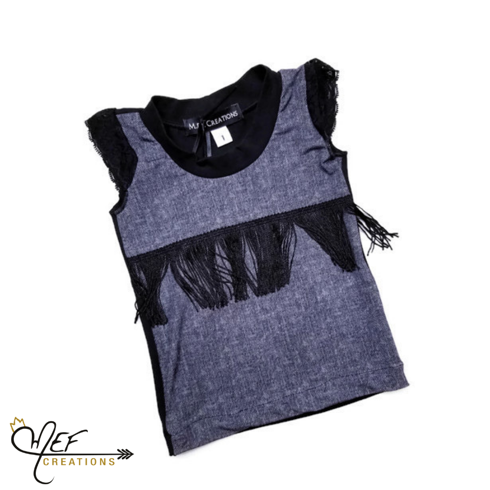 Ce débardeur faux jeans et frange noir par MEF Créations Boutique