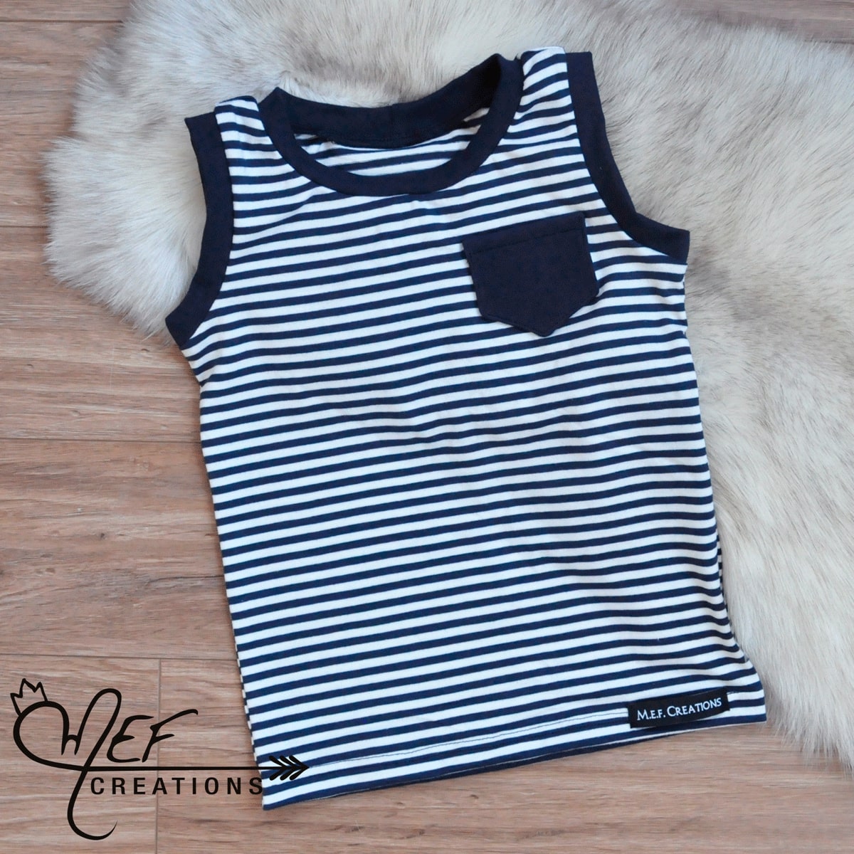Débardeur garçon lignée blanc et marine