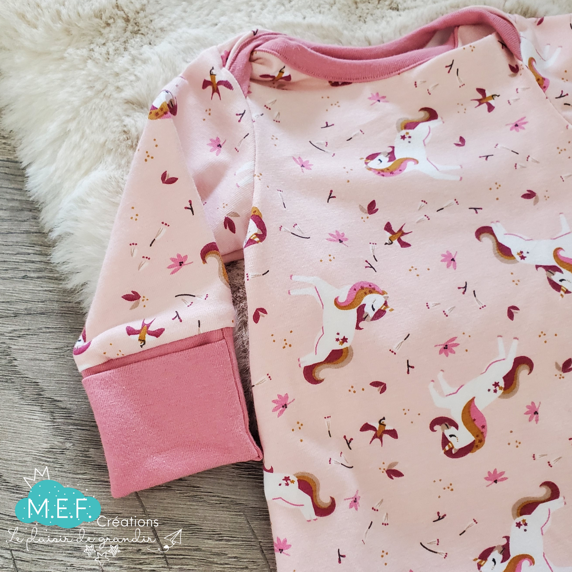 Dormeuse à noeud licorne, vêtement bébé 3 mois