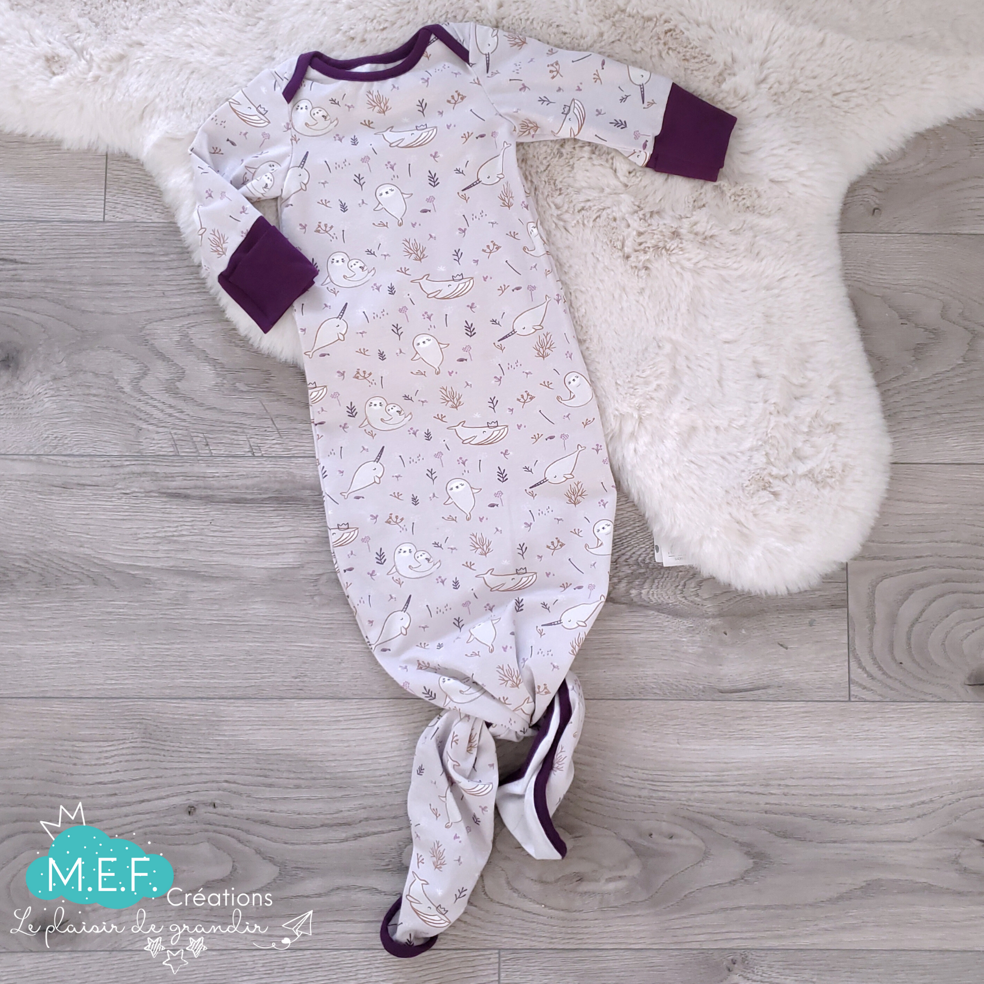 Dormeuse à noeud narval, vêtement bébé 3 mois