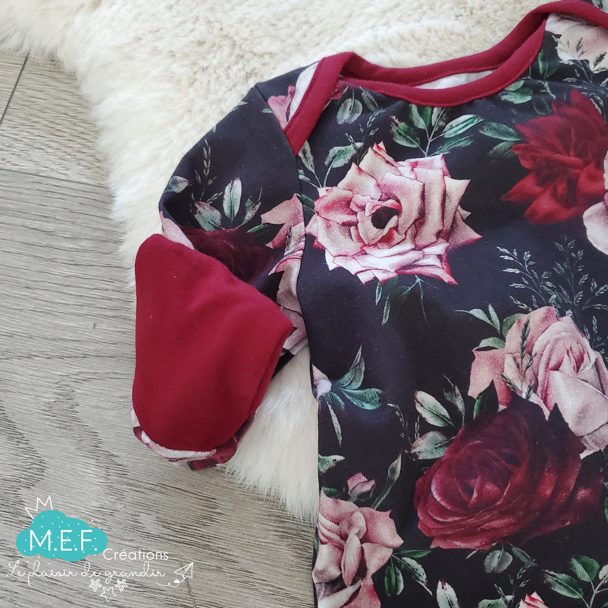 Dormeuse à noeud roses rouges, vêtement bébé 3 mois