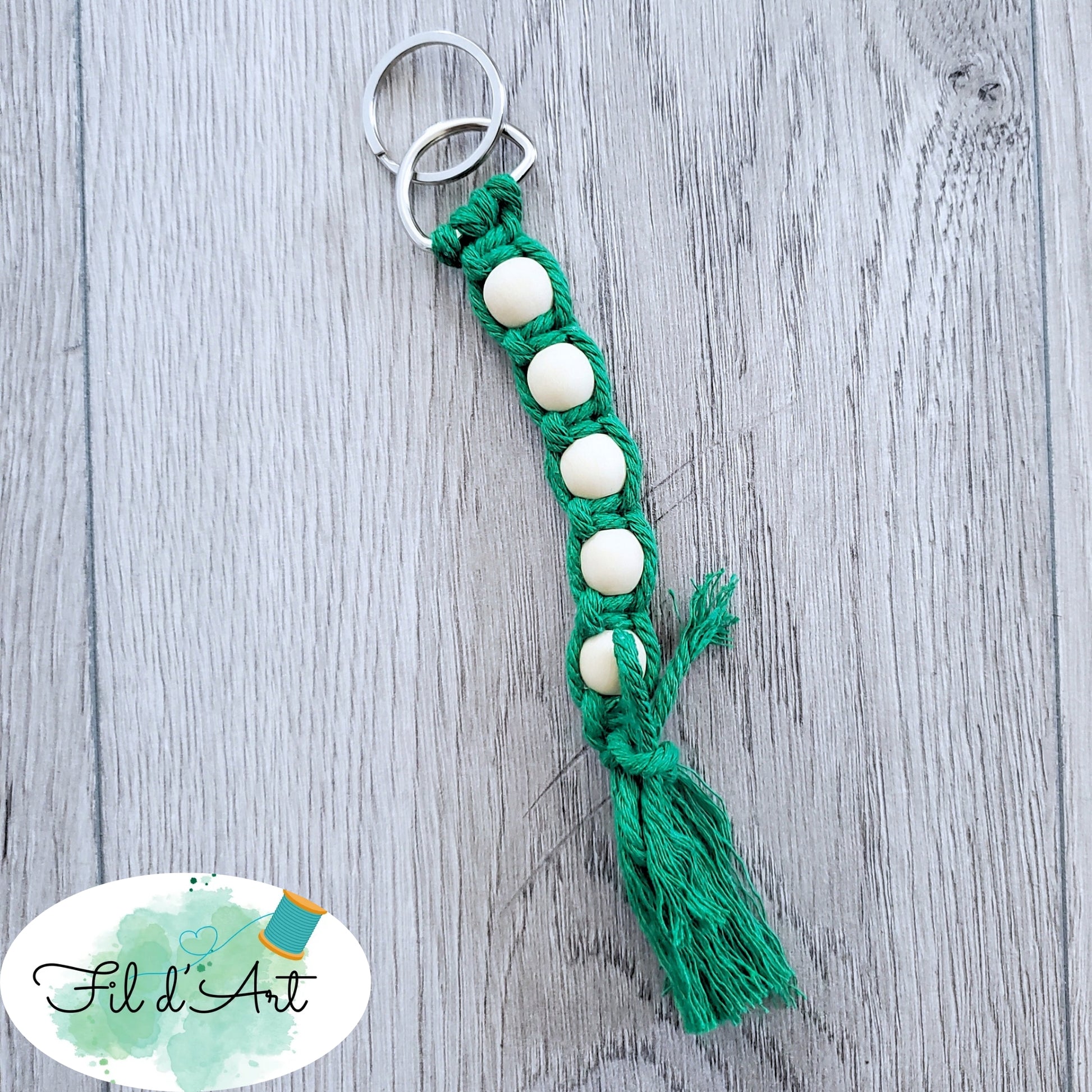 Porte-clés BILLES et macramé VERT par Alicia Forget de le fil d'art