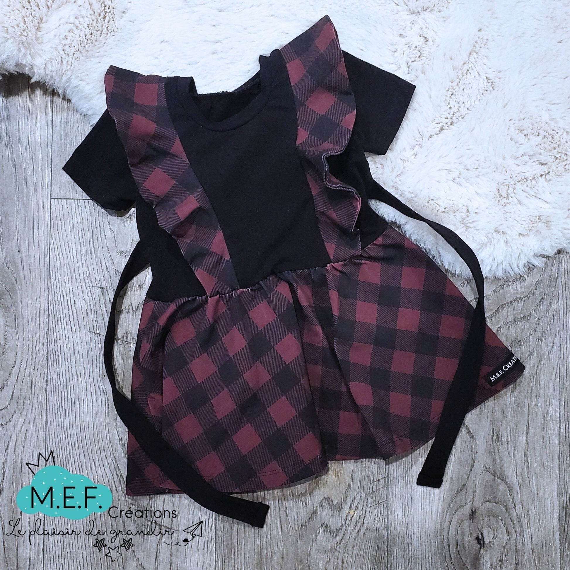 Robe fillette carreaux, bretelles à volants, LIQUIDATION, 1 à 3 ans