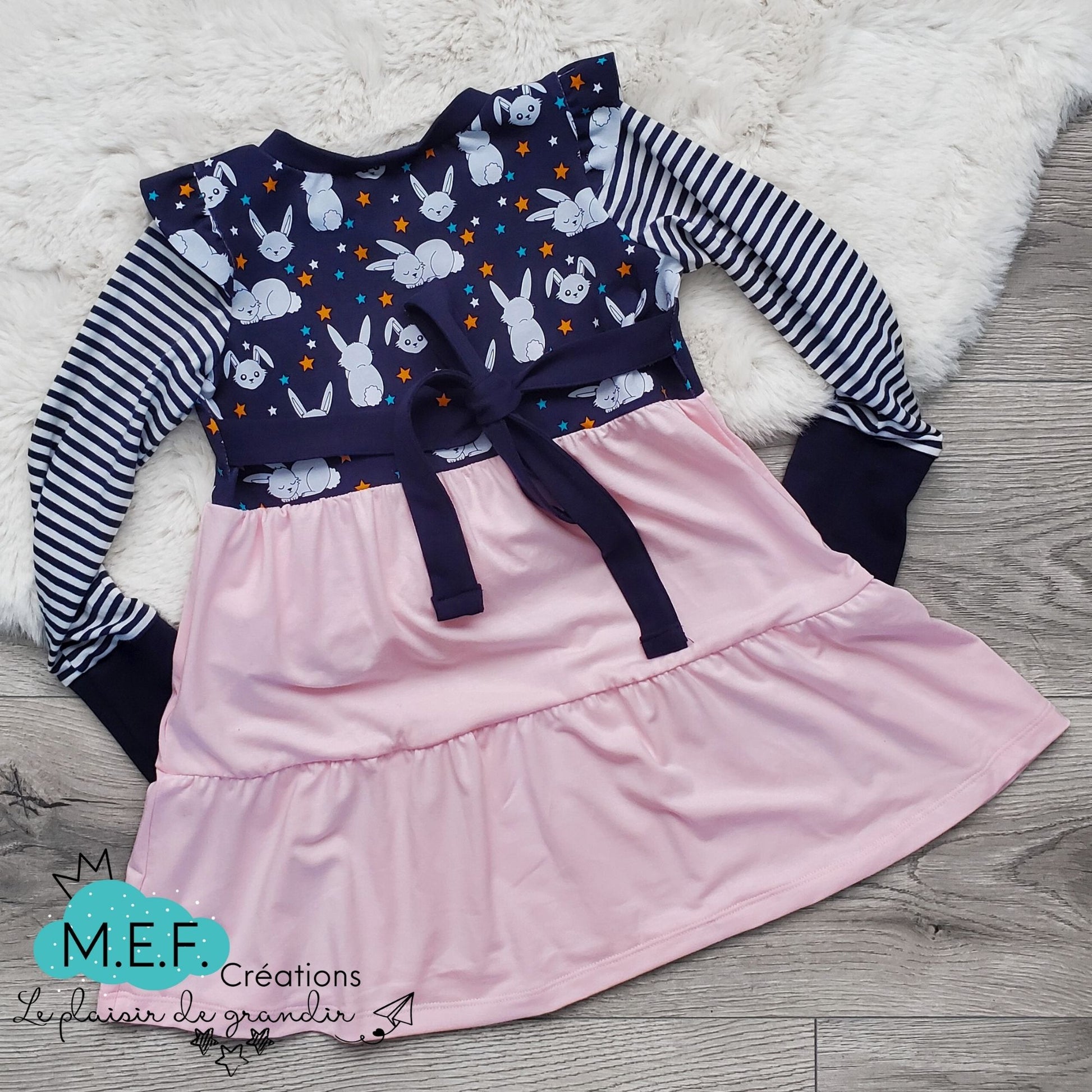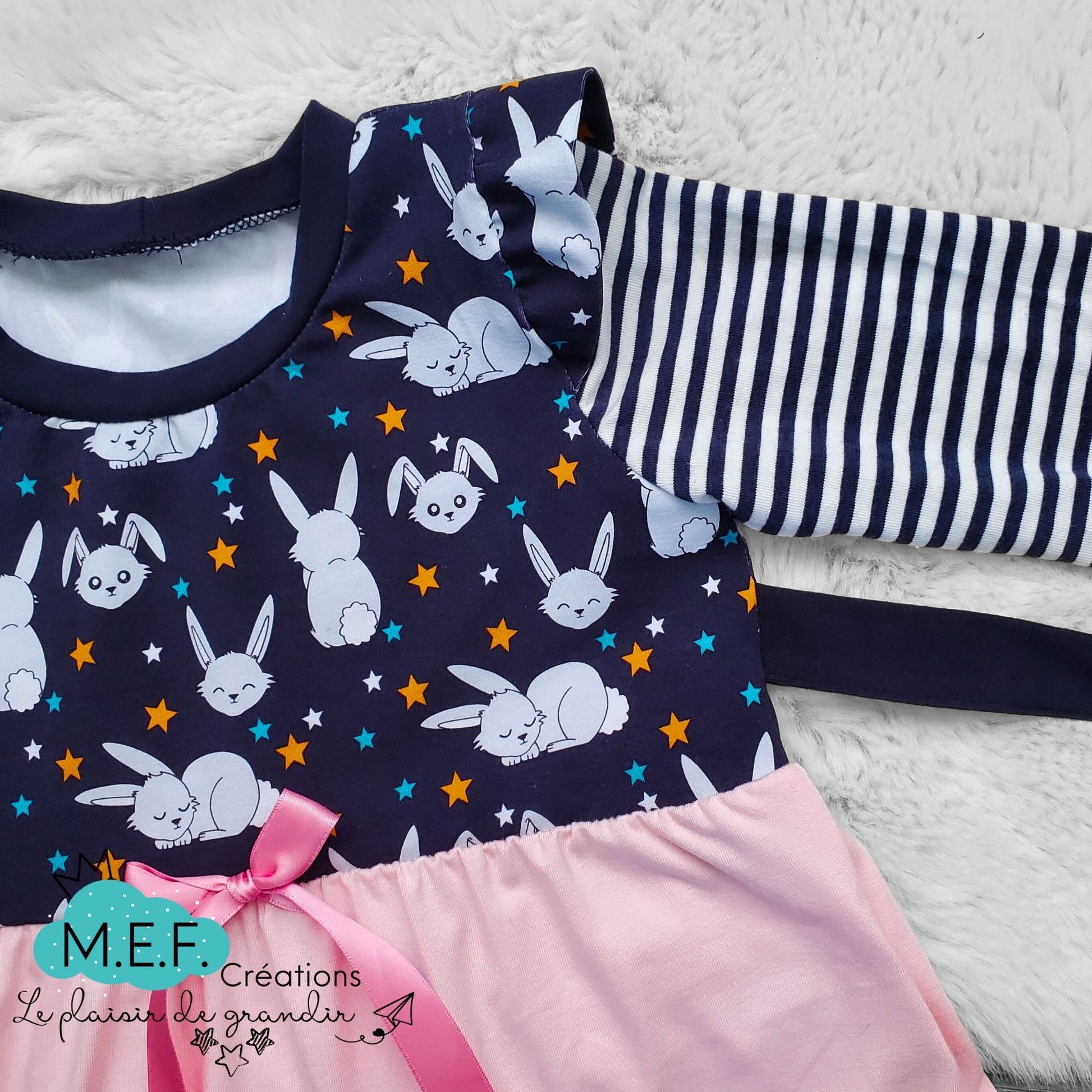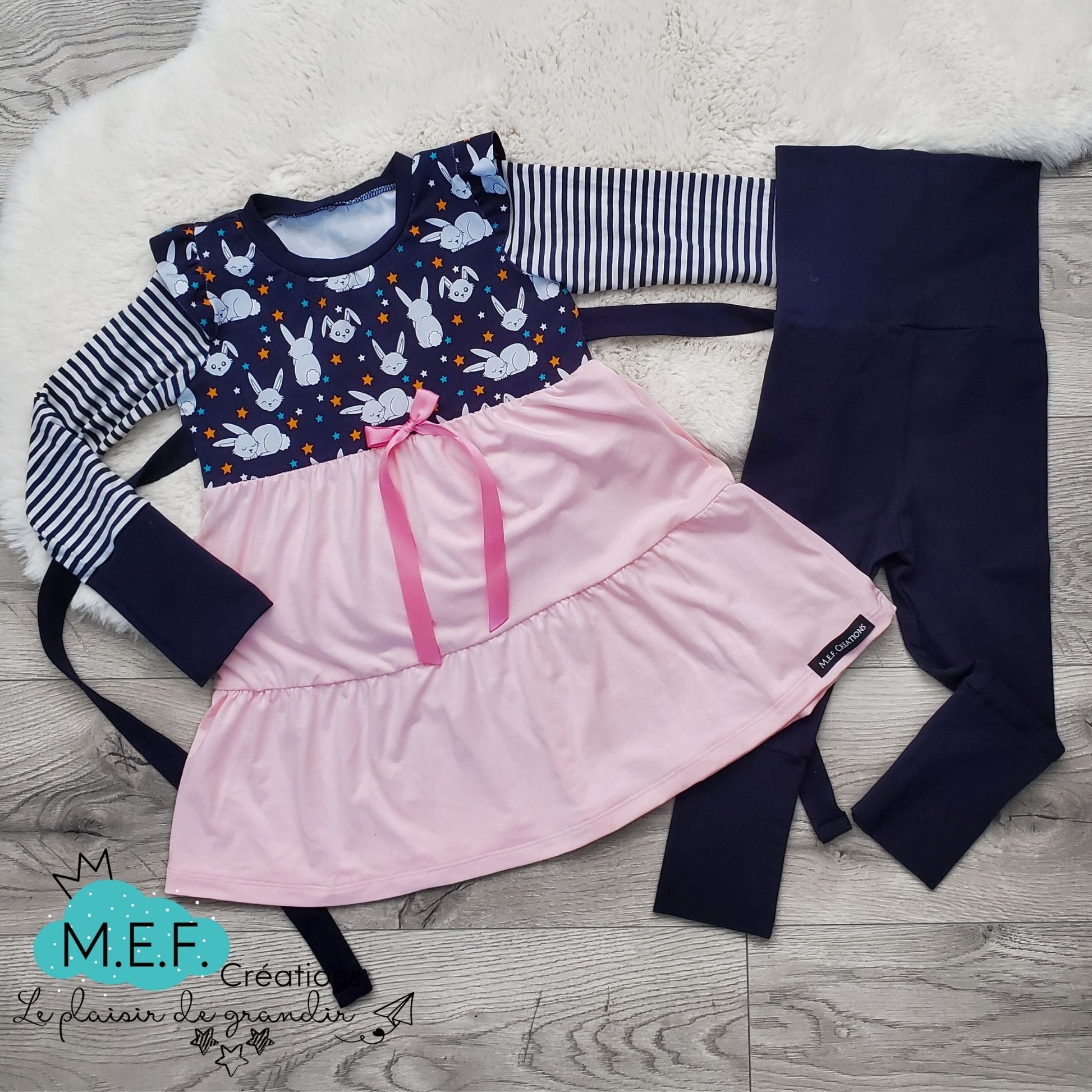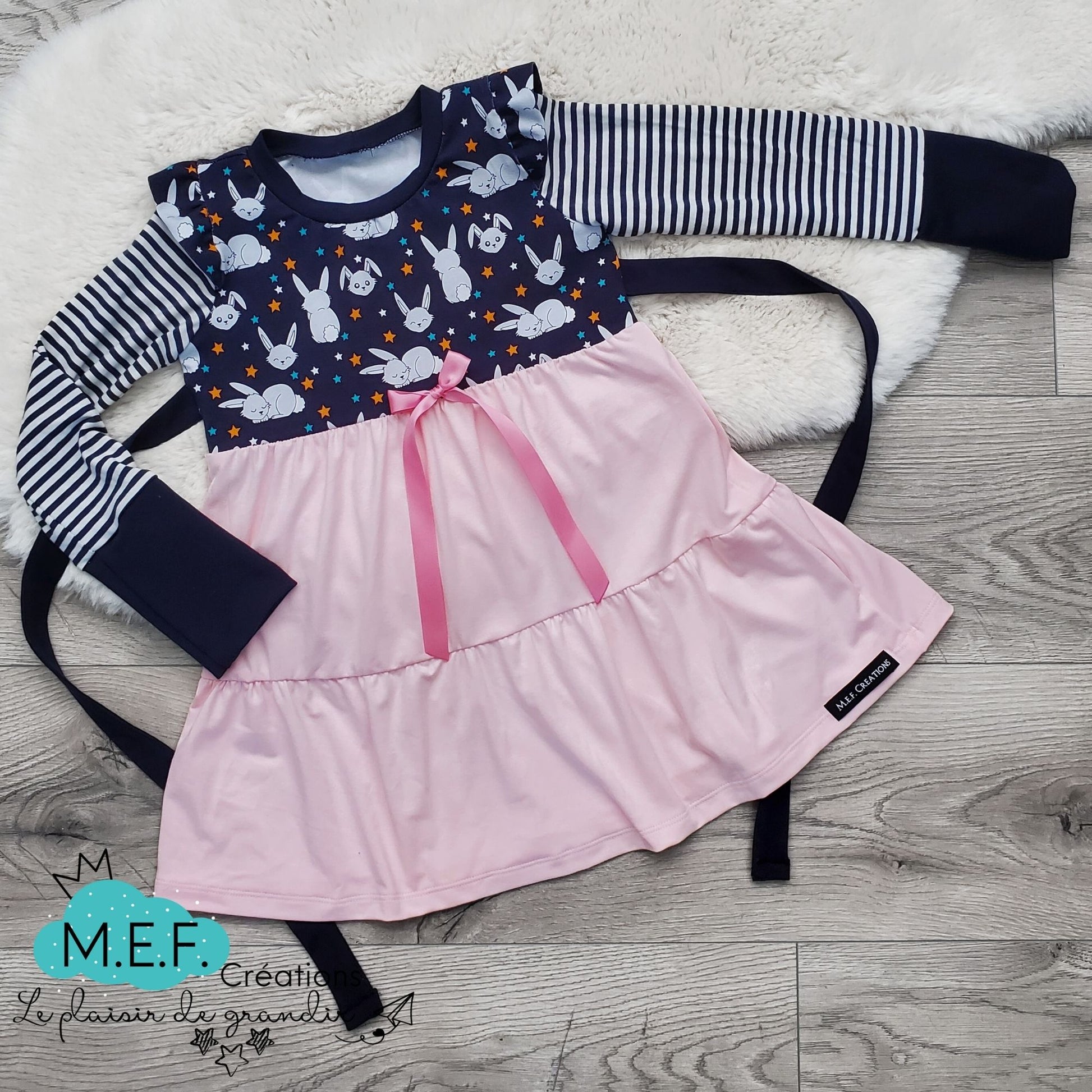 Cette petite robe lapin douce fera le plaisir de vos fillettes. En effet, cette robe fillette permettra à votre enfant de s'amuser tout en restant confortable et branché. Ajoutez un pantalon évolutif coupe legging marine pour complèter à merveille le look. Quoi de mieux que de voir son enfant heureux de jouer en portant cette robe pleine de douceur.