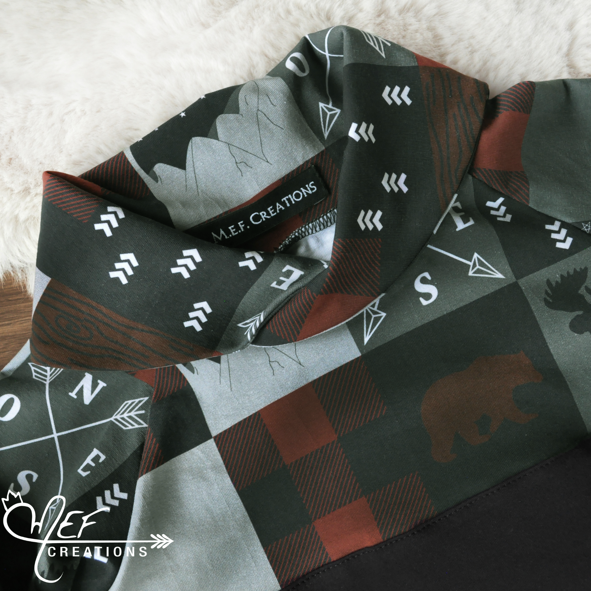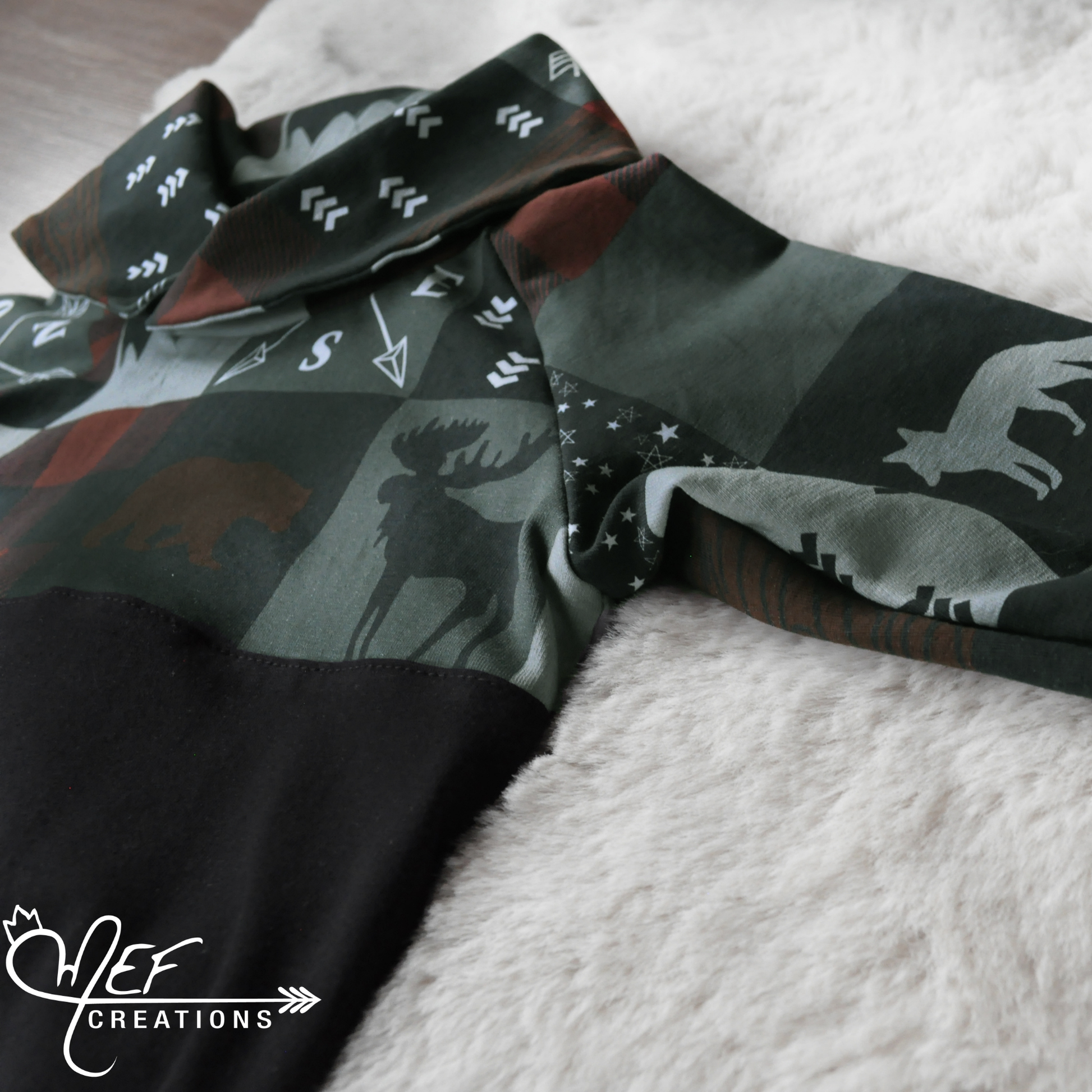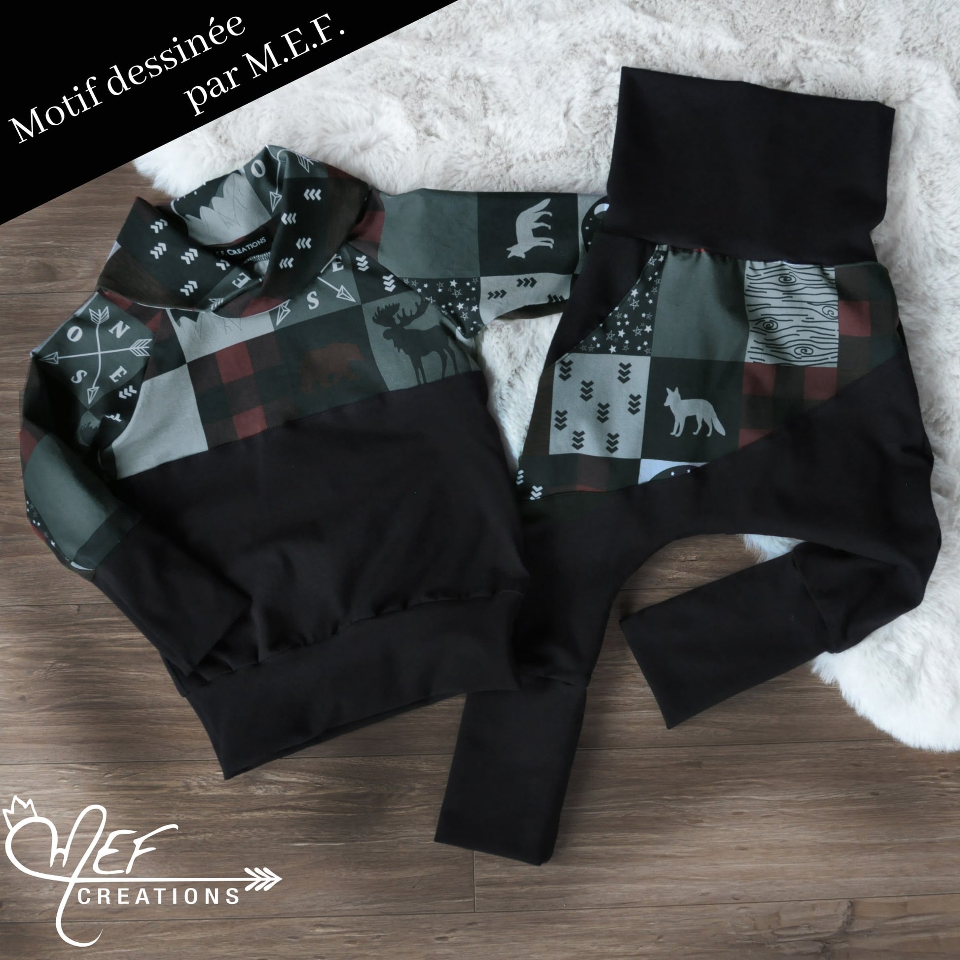 Ce hoodie col haut garçon assure confort et look branché au motif de nos forêt canadienne. Son motif fera le bonheur des petits comme des grands. Votre coco sera heureux de les choisir lui-même le matin pour bien commencer la journée. Ajoutez-y un sarouel évolutif jeans ou un pantalon évolutif noir pour un look stylé. De plus, son tissu doux saura fortement apprécier chez les enfants qui ont la peau sensible et sa belle épaisseur les rendra plus durables.